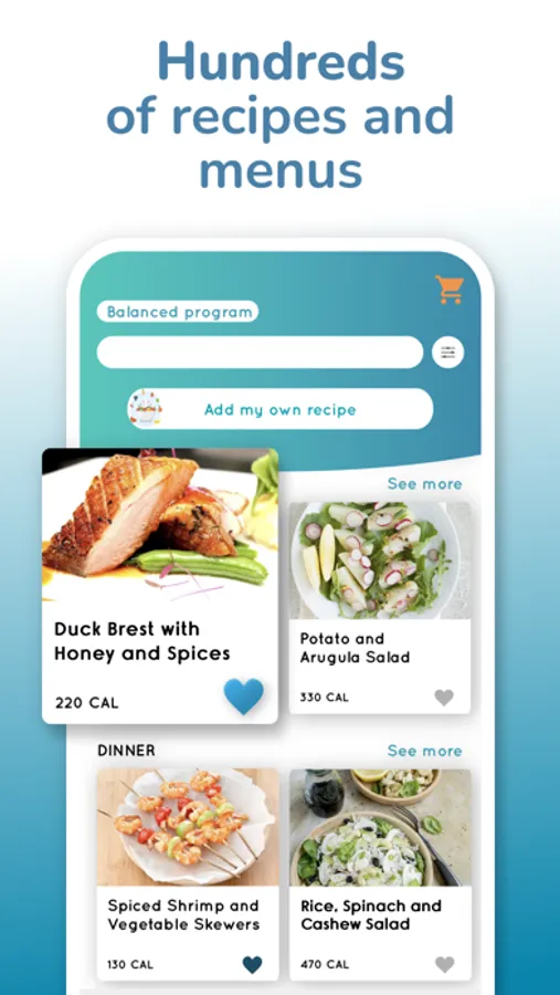 ● 5. To help you create the meal perfectly suited to your weight goal, the app can provide suggestions for your next meal, pre-established meal plans as well as your shopping list for coming meals.