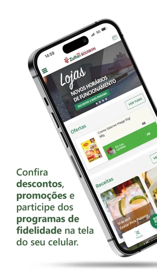 Conseguirá conferir os produtos que possuem descontos e ofertas especiais em primeira mão. Além disso, pode se inscrever para receber promoções pelo WhatsApp – inclusive selecionando a sua loja Zaffari e Bourbon.