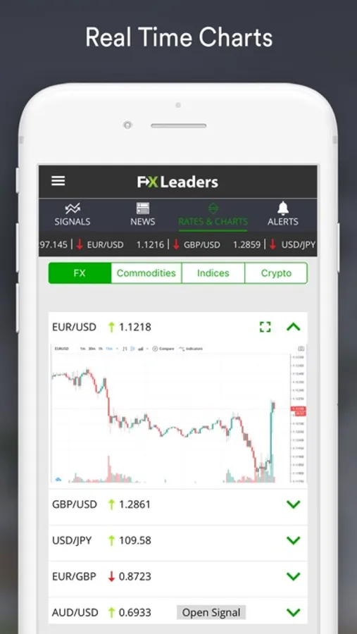 FX Leaders’ Live Forex signals app brings you the best and most popular trading signals in the industry, on FX, Cryptos, Indices, Stocks, and Commodities such as Gold and Oil.