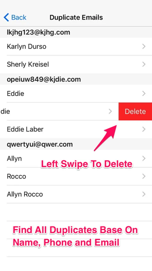• Find duplicate contacts based on name, phone number and email