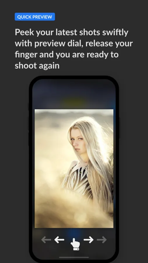 Peek through your latest shots quickly with preview dial, moreover you can swipe your photo to share, edit, or delete while previewing it.