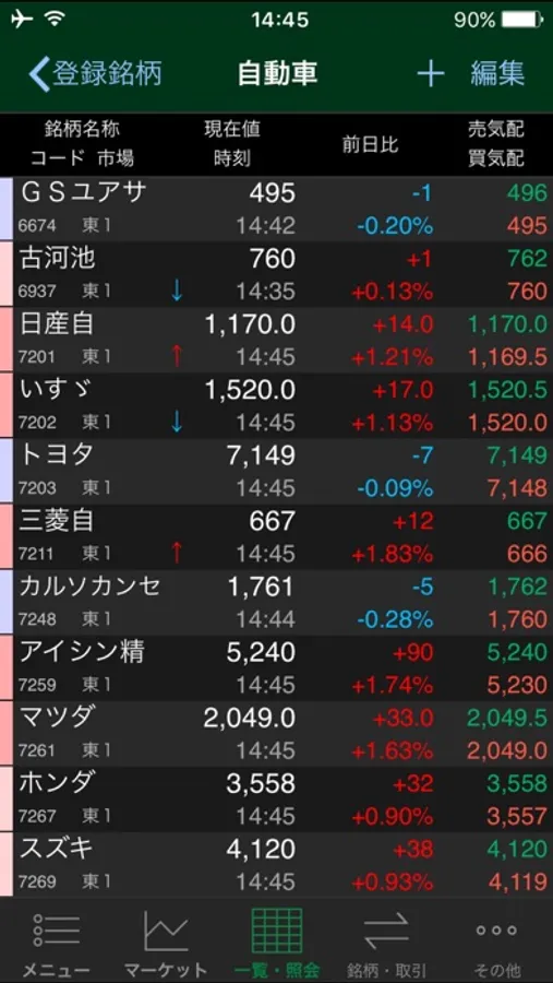 ・30銘柄×30グループ=最大900銘柄まで登録可能です。リアルタイムで株価情報を閲覧できます。