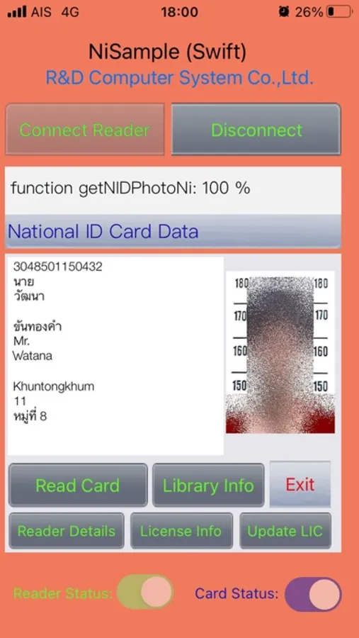 This app is available for downloading, including TDAi SDK and source code. You need a TDAi Thai ID card reader for trying real card reading.