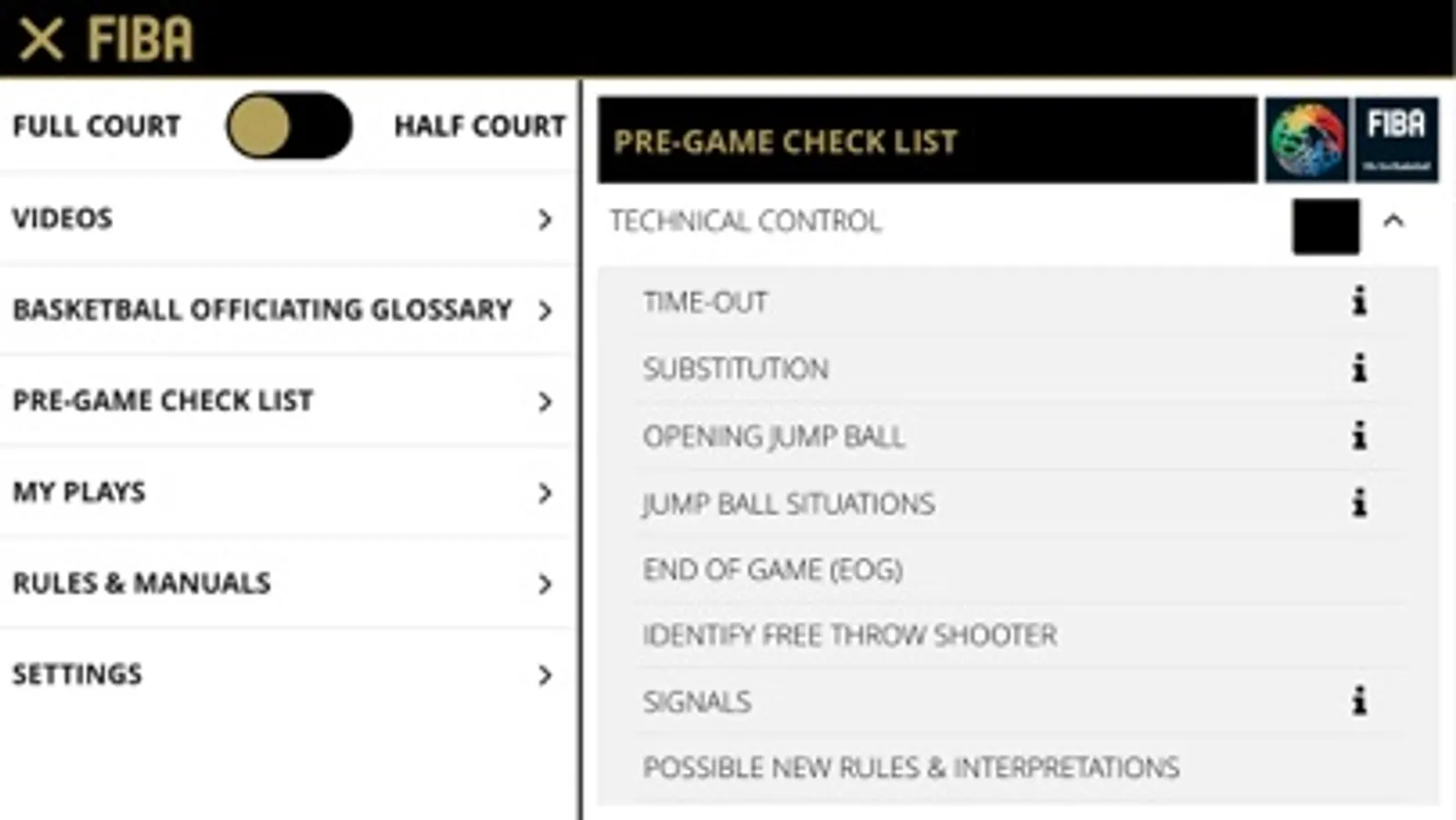 Specialised APP for pre-game preparation of the basketball referees developed by FIBA.