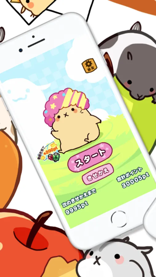 デザインを着せ替えたり、ハムスターの種類を変更することができます。