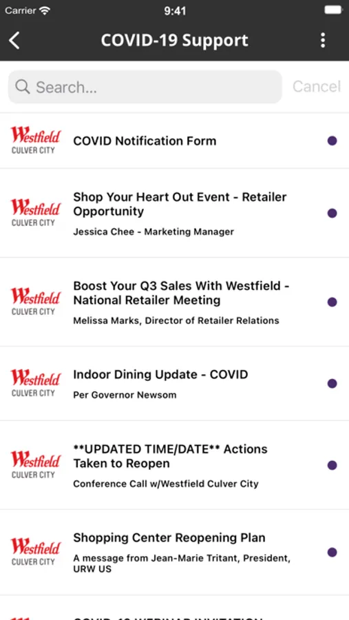 Documents: Find all the relevant documents on the shopping centre with one click thanks to Connect.