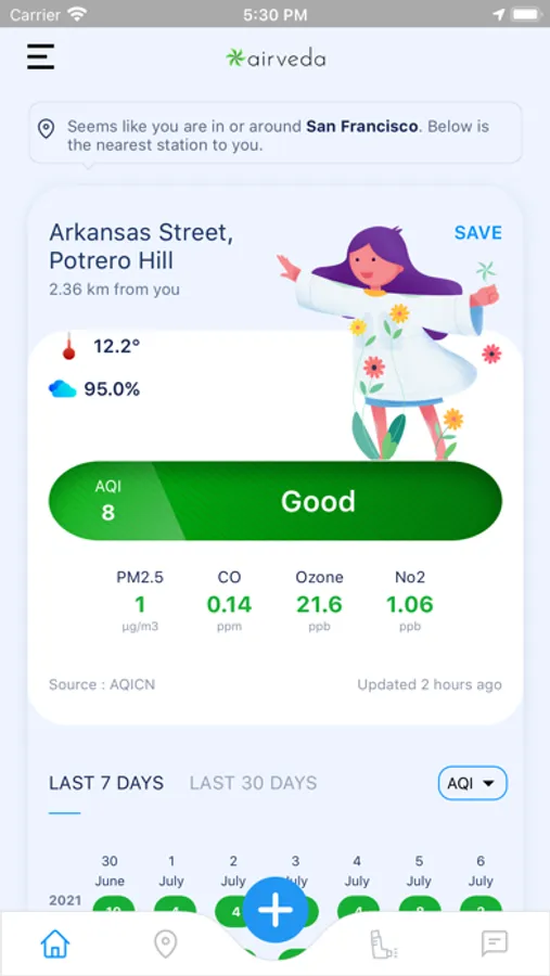 Severe health damage is caused not due to a few hours of exposure to poor air quality but due to long term exposure over months and years. The app shows you, your average air quality exposure, across days. This will help you to reduce your overall exposure to air pollution.