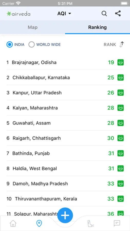 Airveda app shows data from different air quality stations installed across the world to help you track outdoor air quality in your city.
