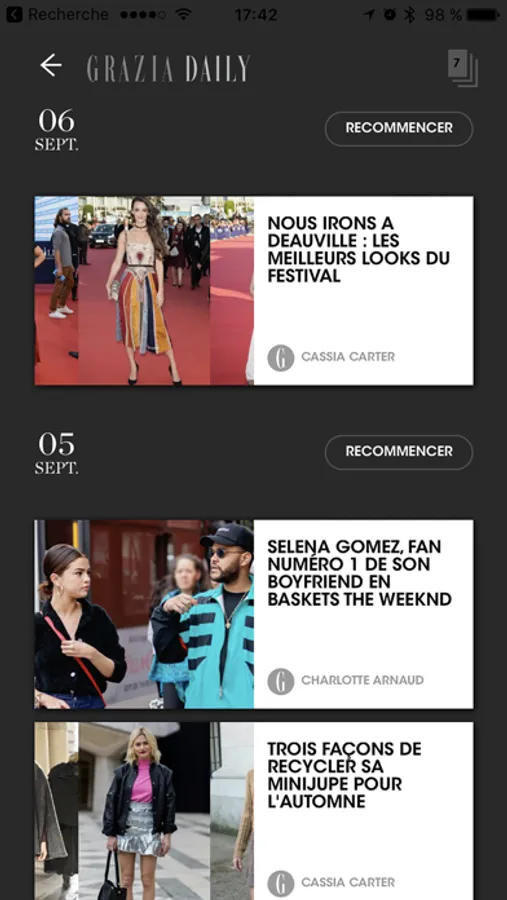 • Vos articles sont sauvegardés et classés par date. Vous pouvez les consulter à tout moment de la journée, même hors connexion.
