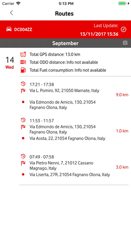 By accessing to an overall dashboard, you can see your vehicle and the related position, getting directions to reach it, and check the routes you have driven according to a specific timeframe.