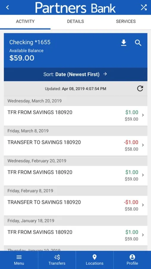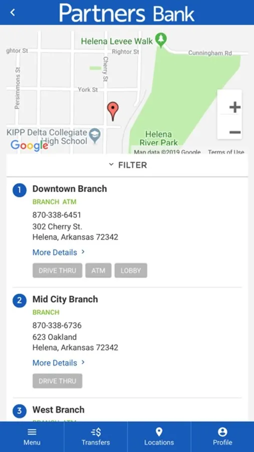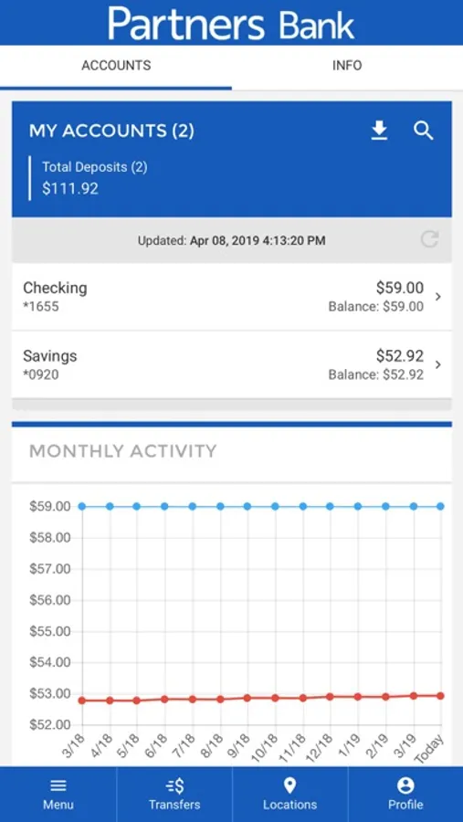 Partners Bank’s mobile banking app gives you the ability to bank on the go. With this app you can: check account balances, transfer money between your accounts at Partners Bank, view check and deposit images, turn debit card on/off, and branch and ATM locations and availability.