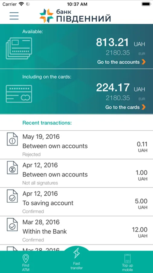 Pivdenny MyBank is a mobile app by Pivdenny Bank for its customers keeping up with the times.