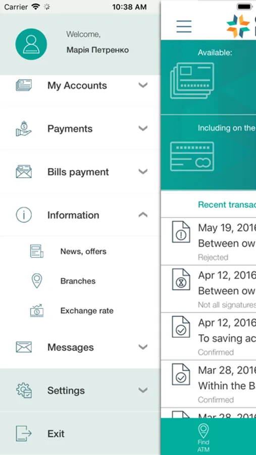 • search nearest branch or ATM on the map, as well as the work of branches in conditions of power outage;