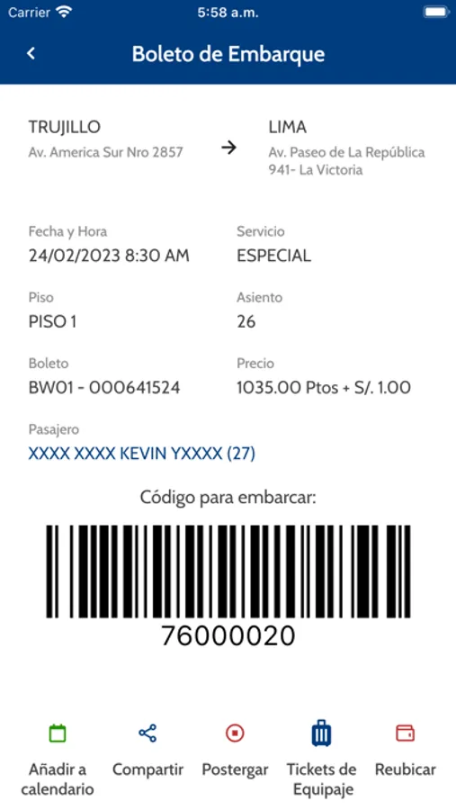 • Acceso para agregar tus boletos en tu calendario, compartirlos en redes sociales o embarcar directamente con ellos desde tu celular.