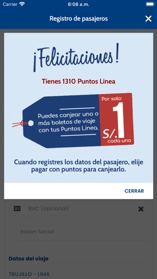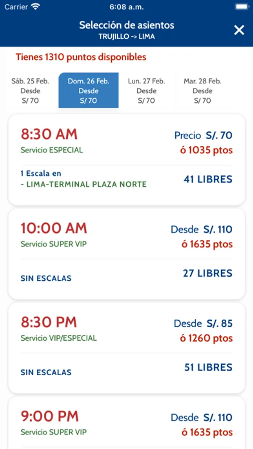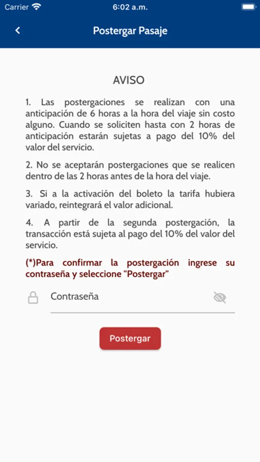 • Acceso a cambiar la fecha de viaje, horario o asiento de mi boleto de viaje (mismo precio).