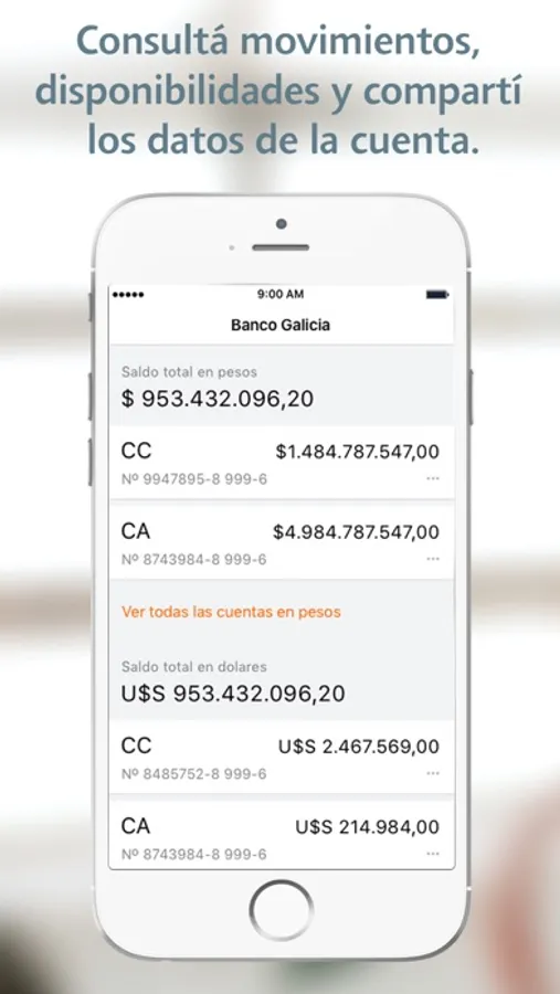 Visualizá saldos y disponibilidades de todas las cuentas que administrás