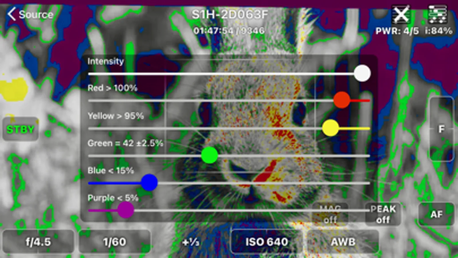 With iPhone 5S or later, iPod touch 6G or later, iPad Air or later, iPad mini 2 or later, and iPad Pro, you can see a false-color picture with adjustable levels.