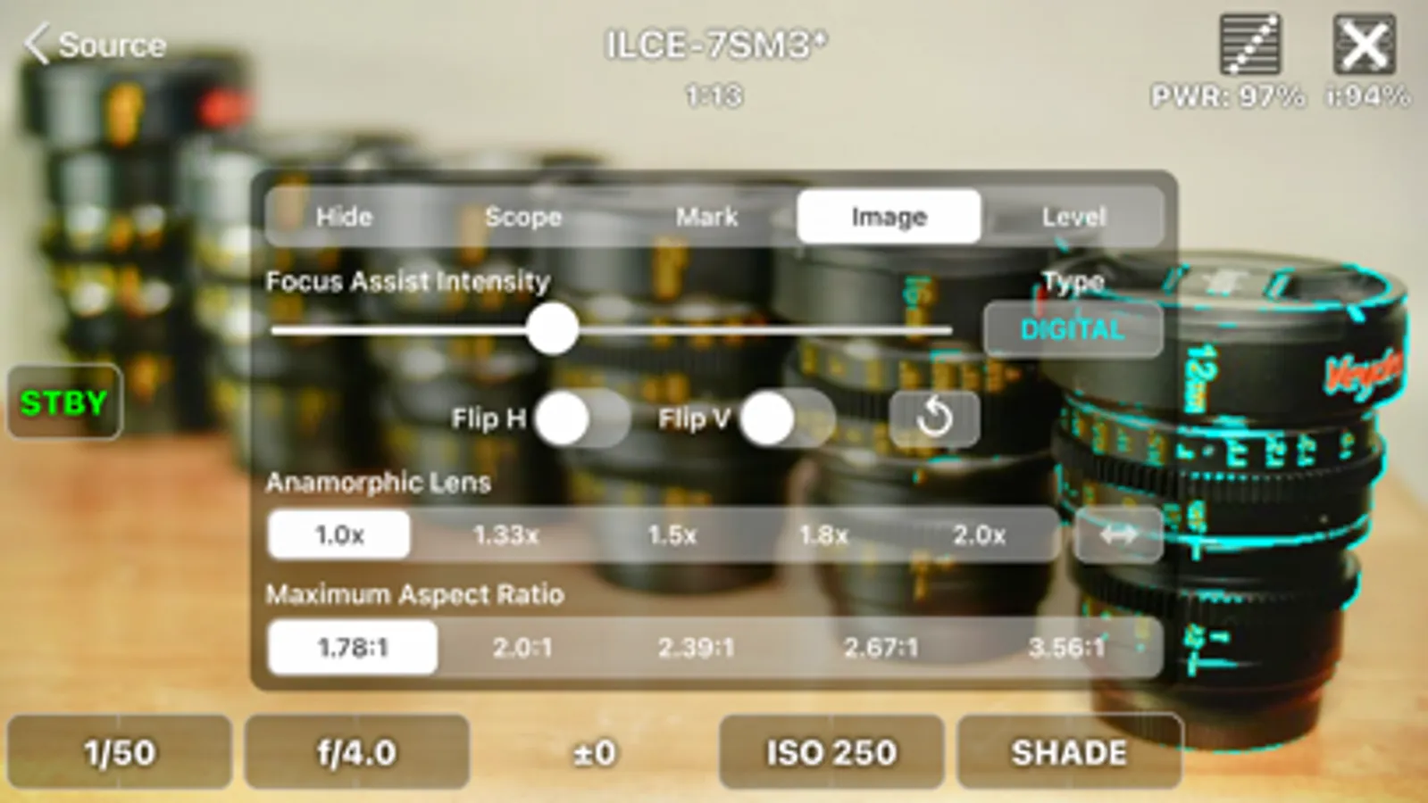 With a supported camera and lens you can start/stop recording, control exposure and color settings, and zoom or focus remotely. Controls are designed for fast, realtime adjustments.