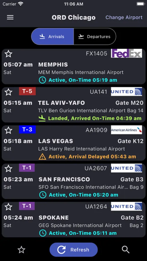 Flight arrivals and departures information for Chicago O'Hare Airport (ORD)