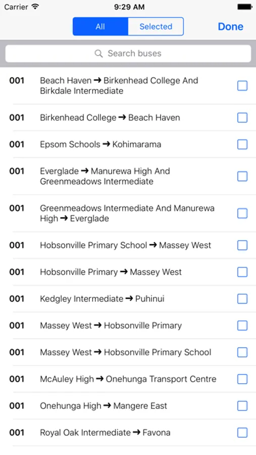 Auckland Transport does not provide locations for every bus, there may be other buses not listed or shown on the map.