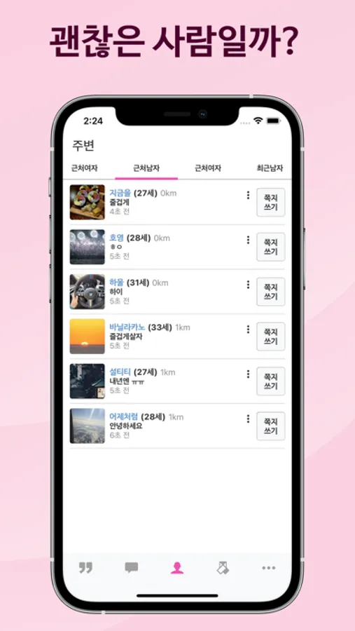 앙팅 즐팅 어플은 가까운 동네에 사는 동네친구, 남자친구, 여자친구 만드는 어플입니다.