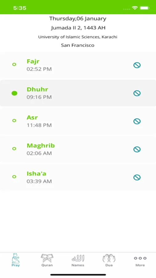 This App use standard calculation methodologies and also provides options to choose different calculation methods based on your location.