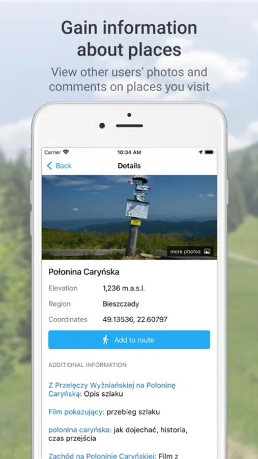 The app also displays information about points of interest: photos and opinions taken from the mapa-turystyczna.pl website.
