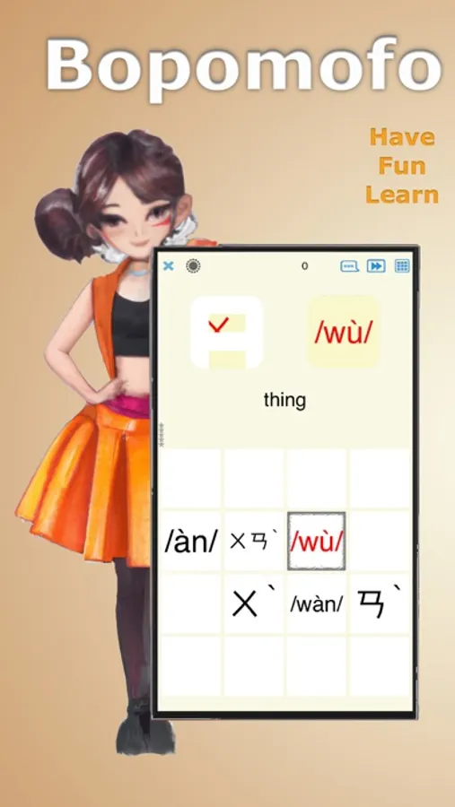 To play just find and tap on all matching pairs of pinyin and zhuyin.