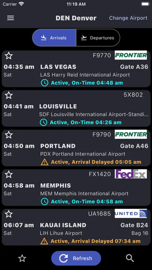 Flight arrivals and departures information for Denver Airport (DEN)