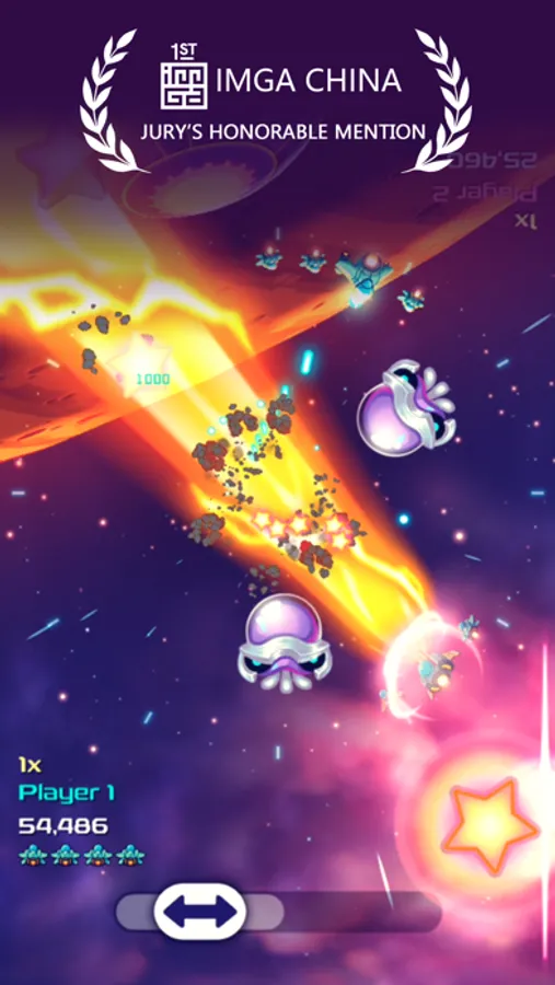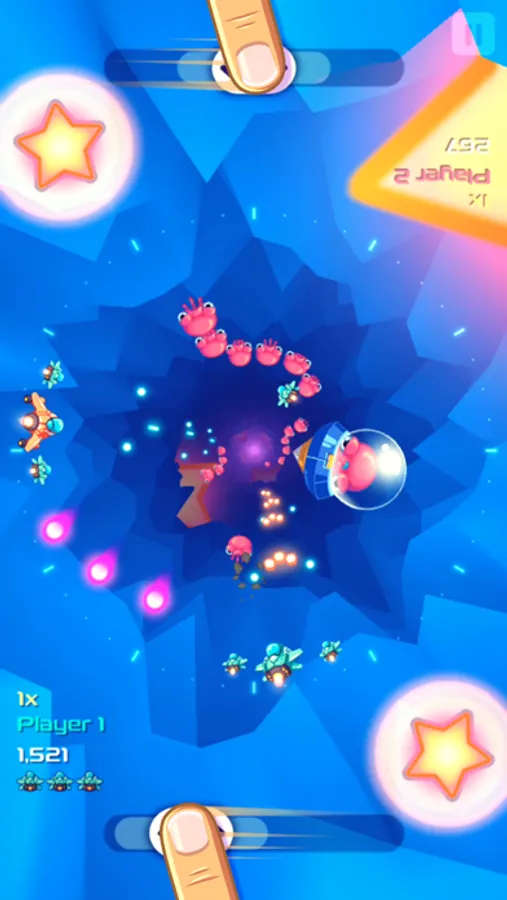 A super fun space shooter with circular rail-shooter gameplay. You can play alone in single-player mode or play with your friends on the same device in co-op mode.