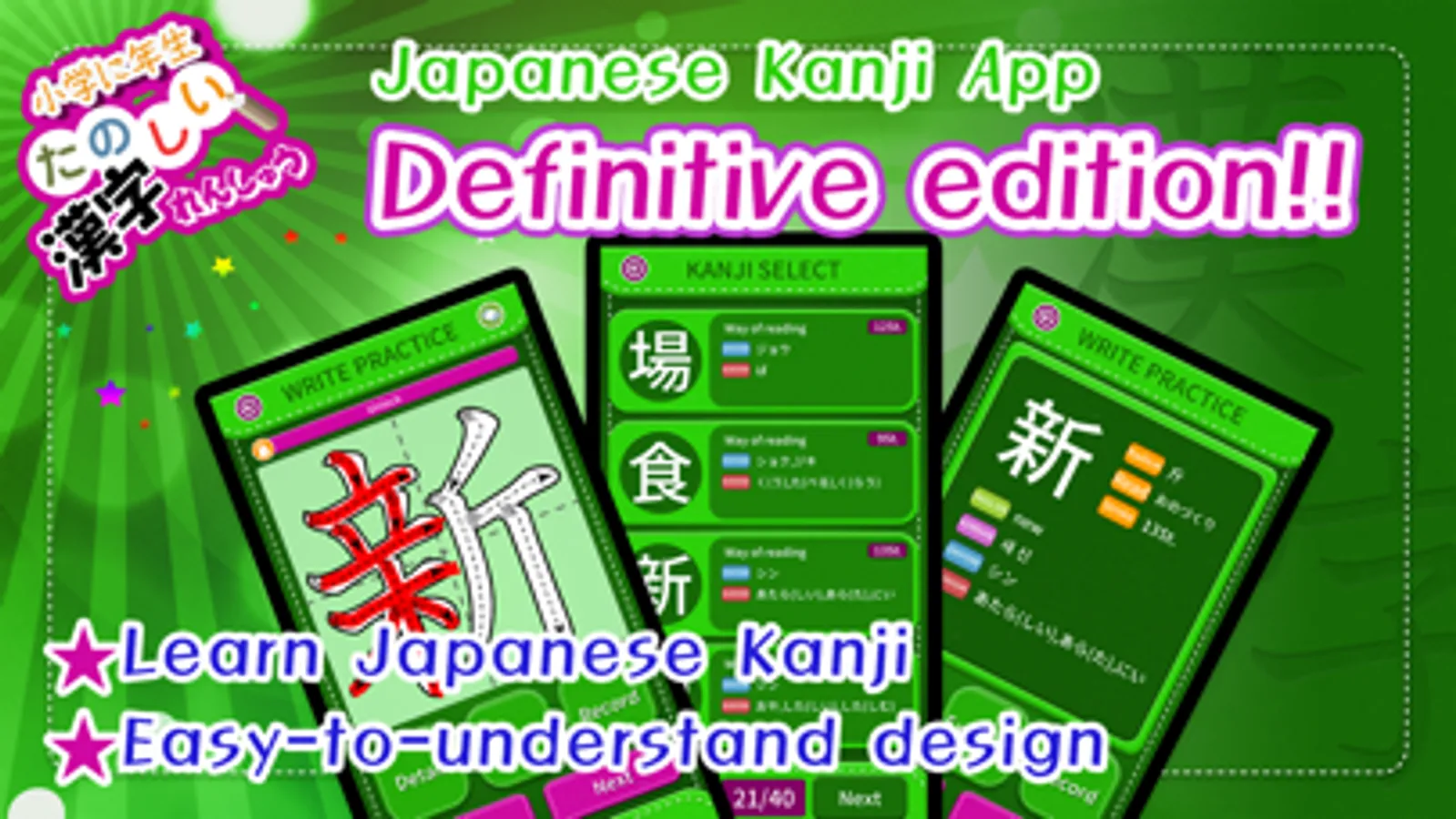 This application can be studied second grade kanji characters 160. Since the Japanese learning in second grade courses for those who want to learn or memorize the Japanese (Japan words) Kanji can be used simply and easily.