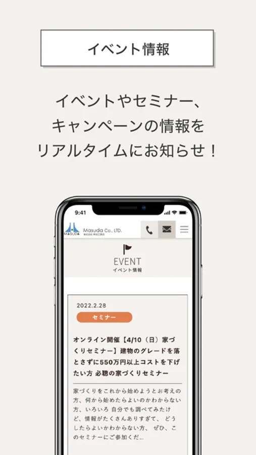 ※本アプリにおけるクーポンやスタンプの特典内容は株式会社桝田工務店が独自で行うものであり、米アップル社とは関係がありません。