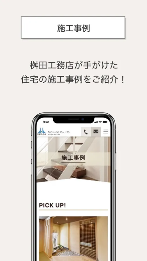 このアプリは、そんな私たち「桝田工務店」の家づくりを、これから家づくりをはじめるお客様によりわかりやすく伝えることができるようにと開発しました。