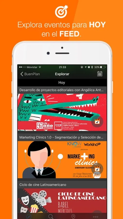 - Encontrar eventos fácilmente, organizarlos por fecha y apuntarte para recibir recordatorios.