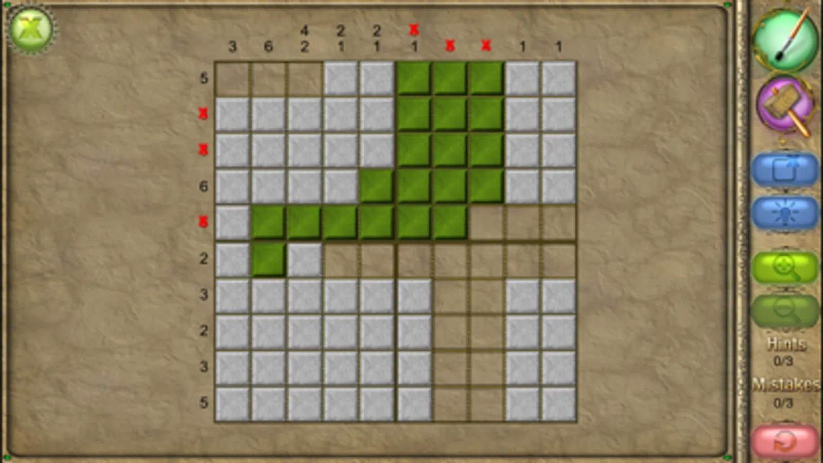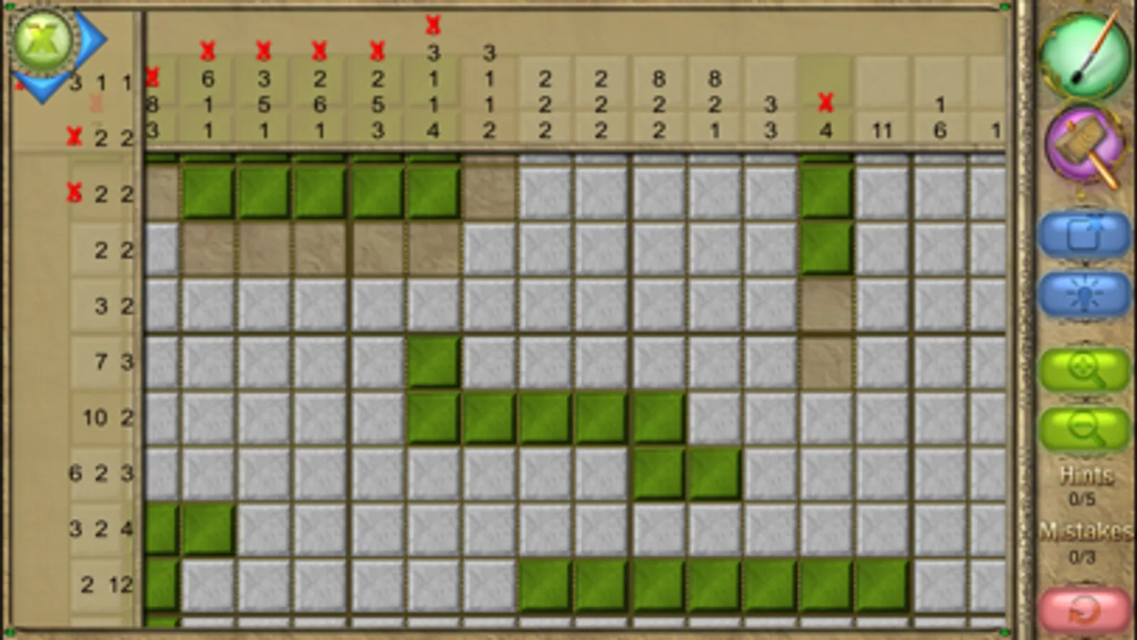 An old Japanese logic puzzle takes on a new look with FlipPix Jigsaw! Touch tiles to paint them or break them to form colorful images. The goal is to use logic to determine which tiles should be filled to reveal a hidden picture.