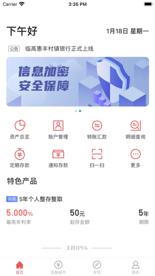 临高惠丰村镇银行手机银行是为智能手机和移动终端用户量身打造的移动金融服务平台,创建“常用功能”、“金融服务”、“发现”、“更多服务”等金融服务专区,为您提供丰富实用的金融服务。个性易用的功能布局、全新流畅的使用体验,助您移动金融和移动生活得更时尚精彩,让您充分享受移动生活的乐趣,是时刻陪伴在您身边的理财生活好帮手。在安全方面,采用数据全程加密、密码超限保护、登录超时控制等机制,并通过用户信息绑定、短信验证等多种安全措施,为您的资金交易保驾护航。