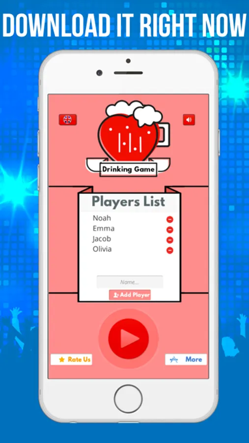 Our app is multi player, insert the players names and click "play". Each turn, we'll pick a random player and give him a challenge. Will you do it?