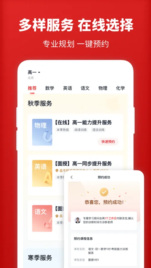 【本地陪伴式答疑服务】在全国24所城市提供老师面对面答疑服务,通过科学诊断和学习能力自查工具综合定位学生知识薄弱点,提供针对性解决方案,帮助学生养成良好的学习习惯,化被动学习为主动学习。