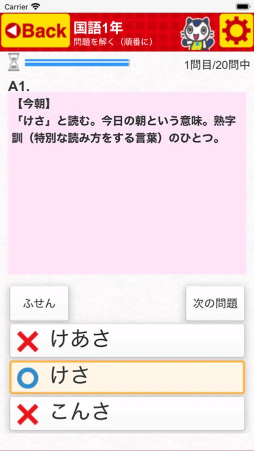 正解を3択で選ぶ形式だから,テンポよく効率的に学習ができます。1日の勉強のおさらいにもぴったり!