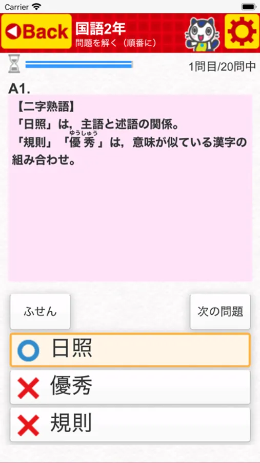 正解を3択で選ぶ形式だから,テンポよく効率的に学習ができます。1日の勉強のおさらいにもぴったり!