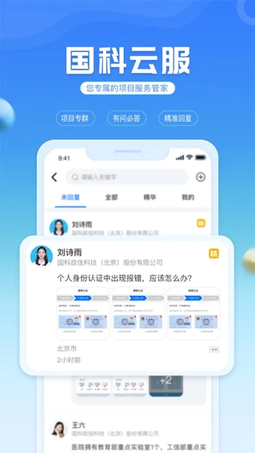 此模块是基于用户切身利益的社交服务,用户可使用文字、语音、表情、图片、视频等多种形式进行沟通交流。同时,可实现社交与服务应用的交互使用。