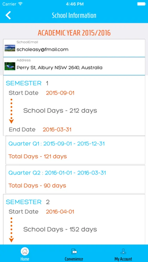 The students, parents and guardians could check the students' attendance, schedule, homework and grades in the App at any time. In addition, the parents and guardians could submit leave requests for the students in case the students can not go to school. Also, the students, parents and guardians could download the students' report cards in the App at any time. And for the international students, the guardians could submit the HomeStay feedback in the App so that the schools and parents could the students' life with host families at any time. In the next version, the parents and guardians could pay the tuition in the App directly.