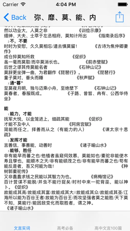 高中生学古文的好应用,给力推荐《高中古文大全》。内含高中文言文词汇、语法大全、高中所有古诗及翻译、高考必备古诗大全。