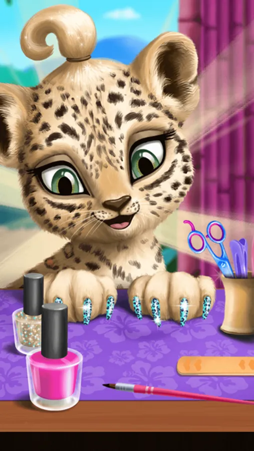 Lovely leopard Amy is here for her beauty makeover and spa! Wash her fluffy fur with bubbly shampoo, cut, comb and style Amy’s hair, do leopard makeup and create matching leopard nail art. Dress up Amy in the most stylish jungle clothes and take a picture of her!
