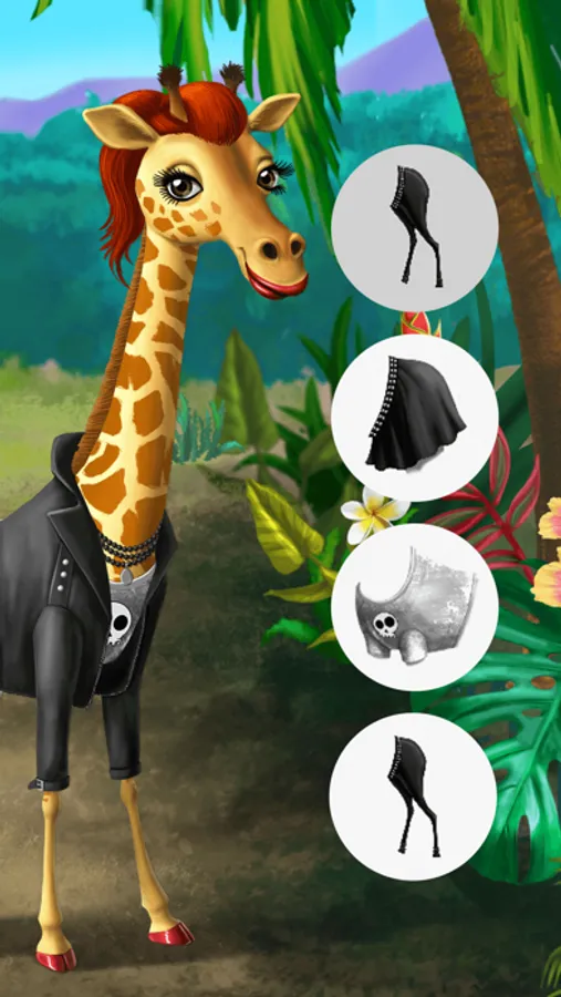 Fashionista giraffe Rachel wants her favorite day spa treatments! Wash and shave her long hairy legs. Shorten, shave, cut, dye and wash her hair. Polish Rachel’s nails red and surprise her with bright makeup. Play giraffe dress up, choose from rock star clothes and accessories in 7 categories, and create Rachel a new rock style outfit!