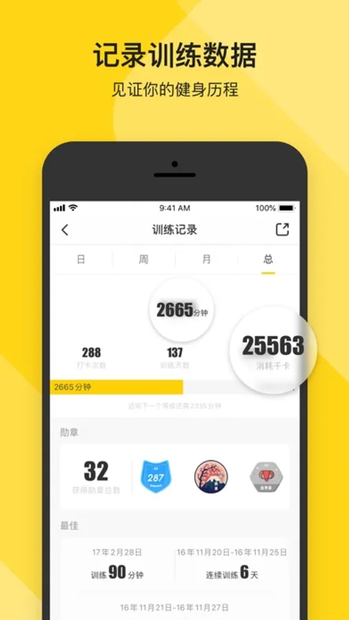 - 训练打卡,健身历程全程跟踪,见证你每天的进步;