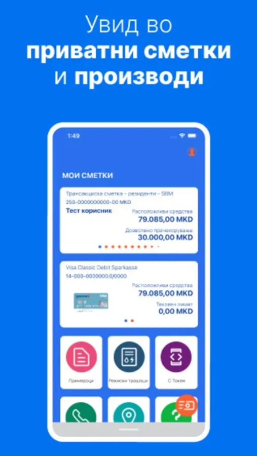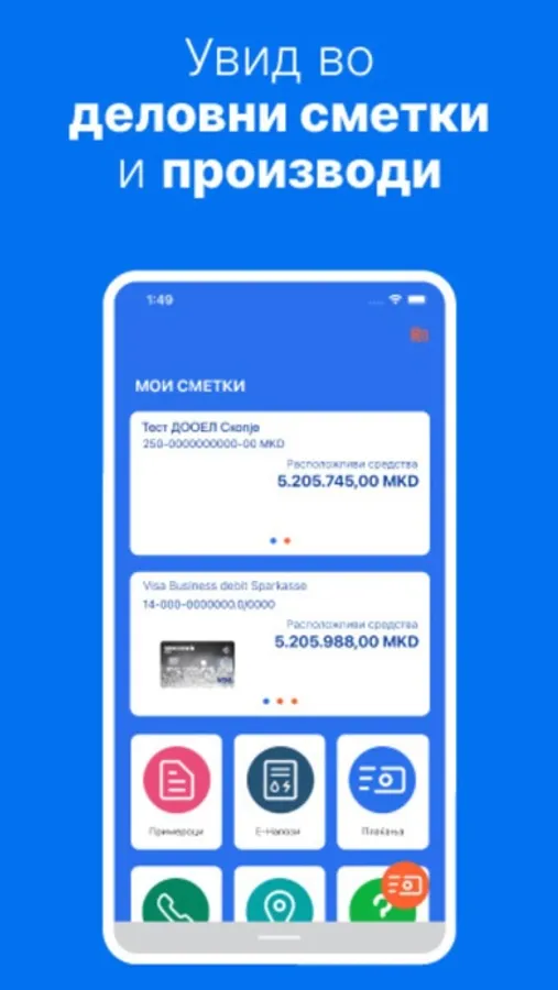 ⁃ увид во состојбата на сите денарски сметки и бизнис картички