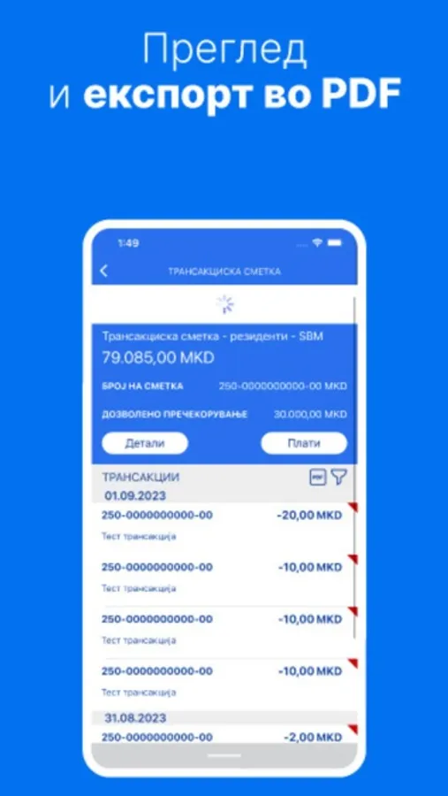 ⁃ увид и експорт во PDF на налози и извод за денарска трансакциска сметка