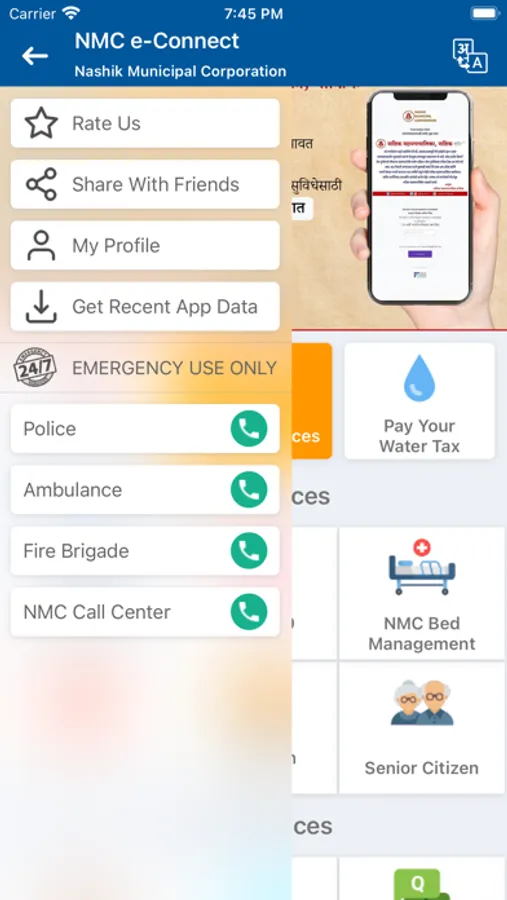 NMC e-Connect is your one touch window to all the information about Nashik Municipal Corporation. This app will help you to become a smart citizen of the city. It includes an Administration and Emergency telephone directory, Information about Hon. Corporators , Payment of NMC Taxes, Complaints, Frequently Asked Questions and a whole lot of more information about Nashik Municipal Corporation. You'll never feel lost once you have this app installed on you devices.