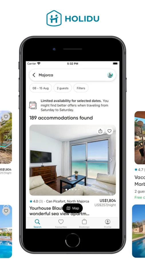 Experience the ultimate convenience and flexibility when planning your trip to Europe with the Holidu app. Whether you're looking for a cozy cottage, a charming holiday home, a spacious apartment or a luxurious villa with a private pool, our app offers a smooth and efficient way to find the perfect accommodation for your holiday.